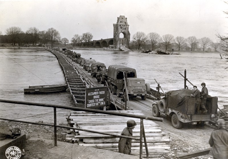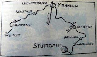 Après la libération de Bitche, la Division entière traversa le Rhin à Ludwigshafen/Mannheim. Des bombardements alliés ayant détruit les ponts sur le Rhin, un ponton de fortune fut hâtivement construit pour permettre aux troupes de passer le fleuve, en direction de la Neckar et de Heilbronn.