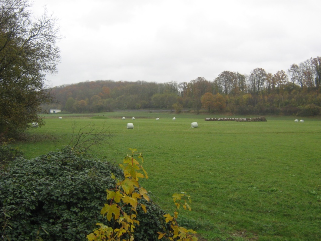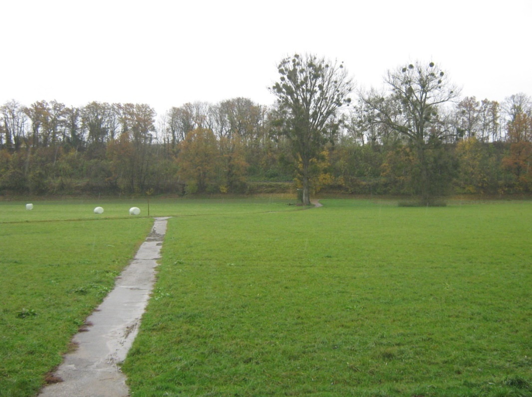Soit la ville est bâtie sur le site de la bataille, soit je suis allé trop loin. Je reviens à la route principale et me dirige vers le nord, la rivière et les rails sur ma droite. Un kilomètre plus loin, la route croise la Jagst et des rails la suivent. Je prends la prochaine sortie, direction Duttenberg. Je tombe sur une plaine inondable où il n’y a qu’un seul bâtiment. J’ai trouvé le site.