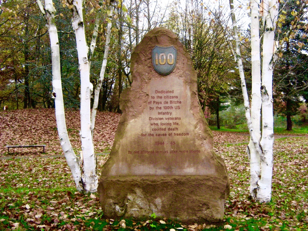 Dedicated to the citizens of Pays du Bitche by the 100th US Infantry Division veterans who, loving life, courted death for the cause of freedom